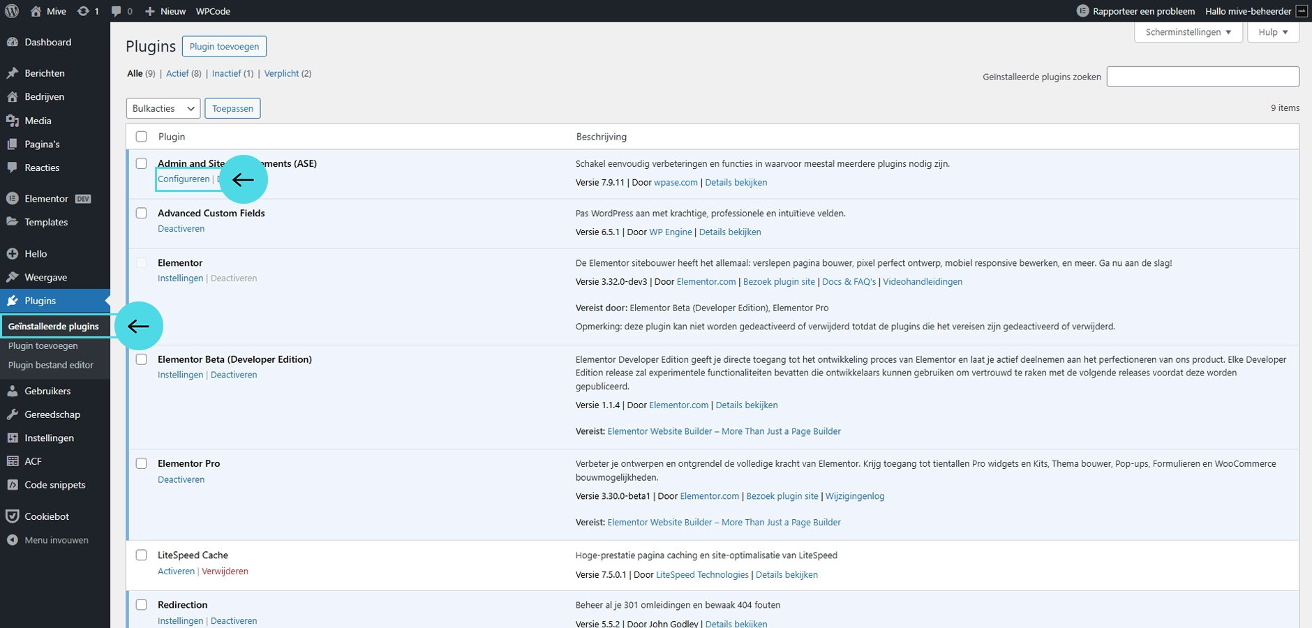 1. Ga naar Plugins → Geïnstalleerde plugins → Klik op configureren.